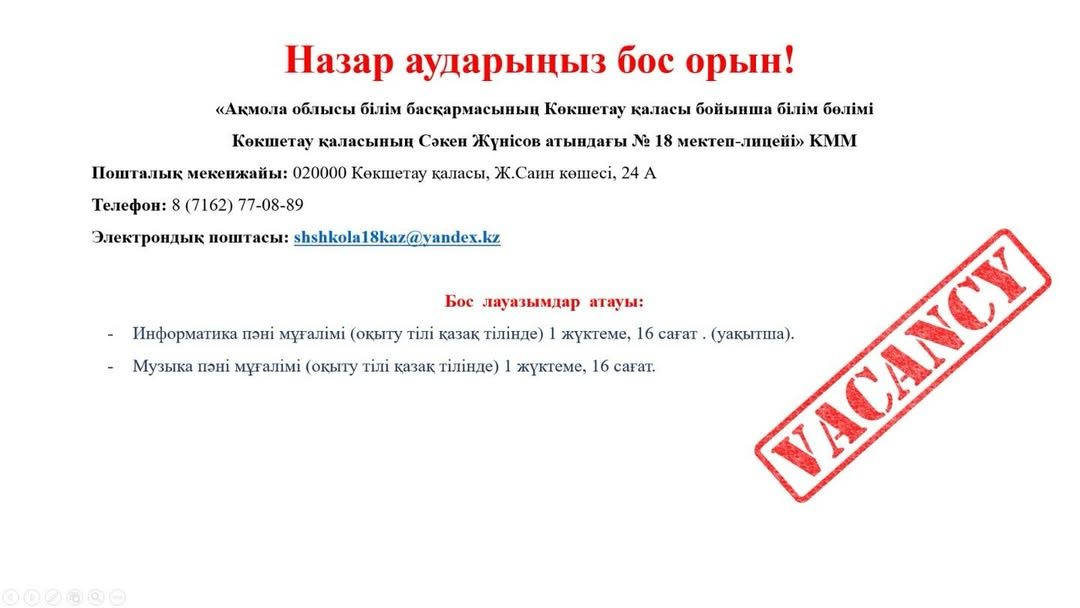 АҚМОЛА ОБЛЫСЫ БІЛІМ БАСҚАРМАСЫНЫҢ, КӨКШЕТАУ ҚАЛАСЫ БОЙЫНША БІЛІМ БӨЛІМІ, КӨКШЕТАУ ҚАЛАСЫНЫҢ "СӘКЕН ЖҮНІСОВ АТЫНДАҒЫ №18 МЕКТЕП-ЛИЦЕЙ" КОММУНАЛДЫҚ МЕМЛЕКЕТТІК МЕКЕМЕСІ