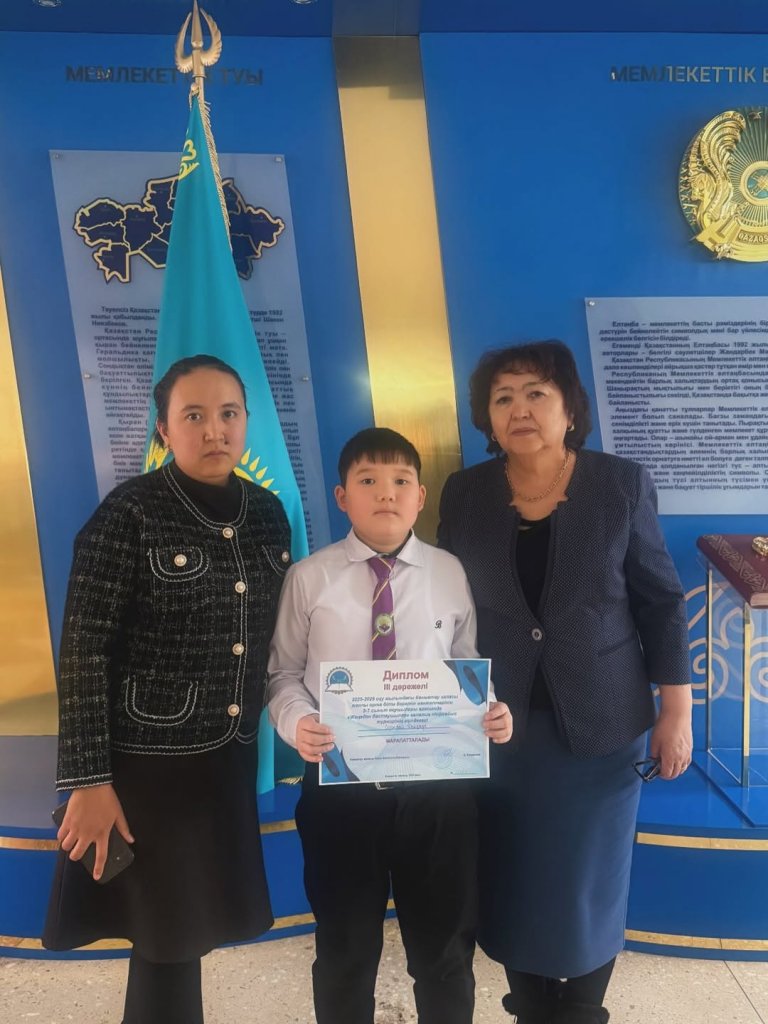 «Адал азамат» Біртұтас тәрбие бағдарламасы аясында 5-7 сынып оқушылар арасында “Жаңадан бастаушылар” қалалық пікірсайыс турнирінің III дәрежелі жүлдегері Серікбай Ханзада.