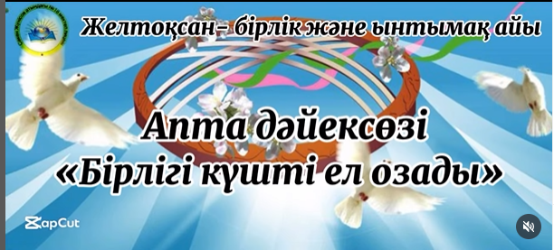 «Адал азамат» Біртұтас тәрбие бағдарламасы аясында апта дәйексөзі «Бірлігі күшті ел озады»